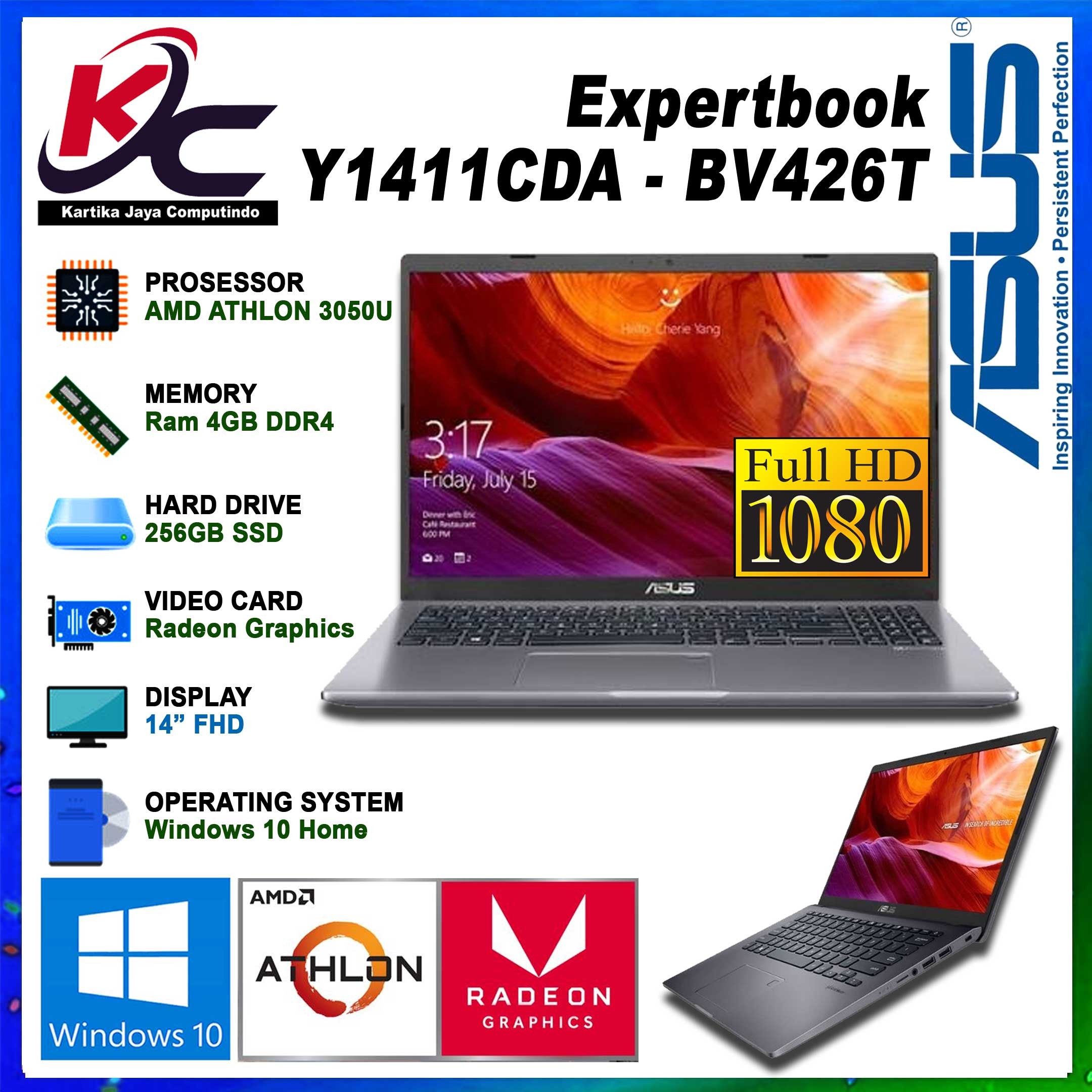 ASUS Y1411CDA - BV426T ATHLON 3050/4GB/SSD256/FHD/W10 GREY
