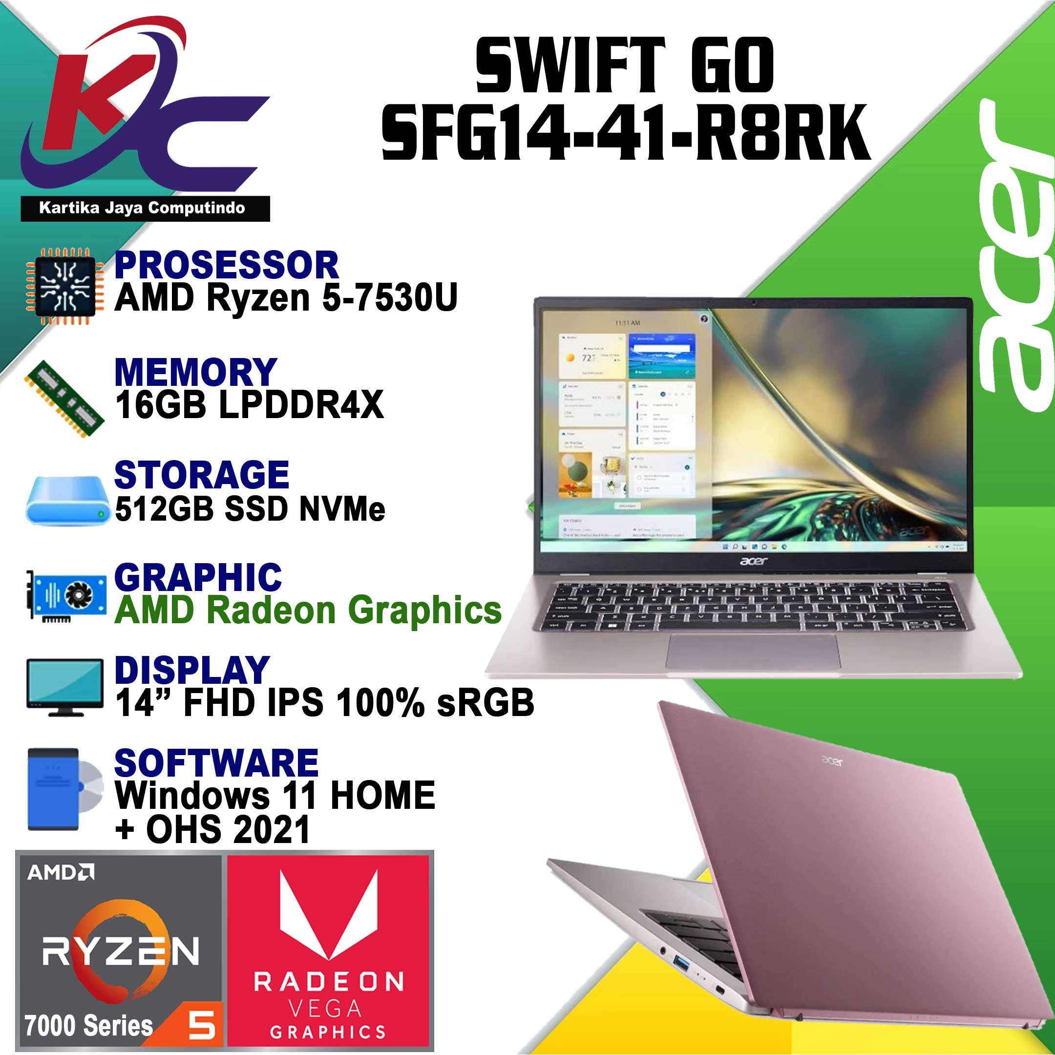- Display : 14? Inch IPS Full HD 1920 x 1080, 100% sRGB, Acer ComfyView