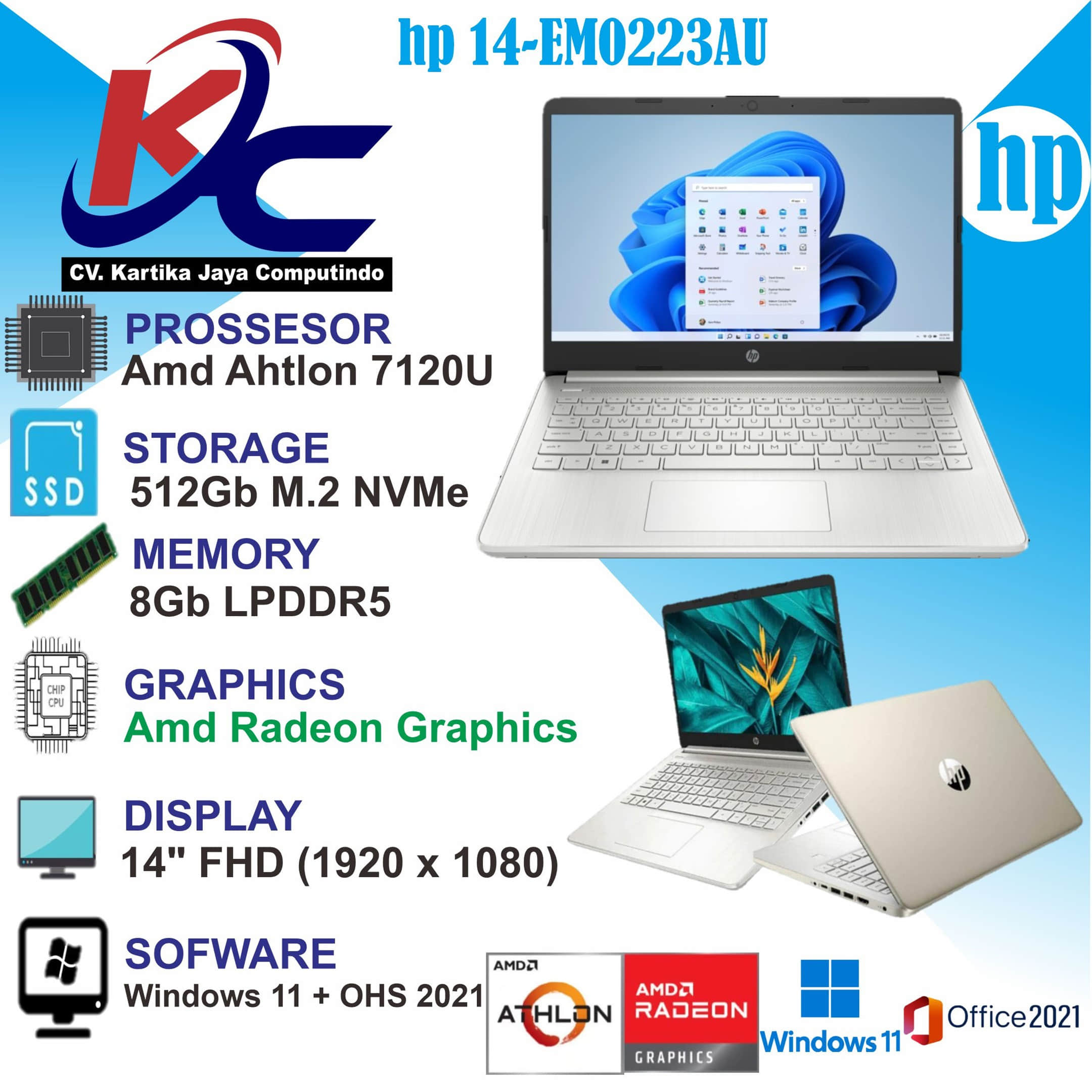 HP 14-EM0223AU ATHL 7120/ 8GB/ 512GB/ W11OHS GOLD