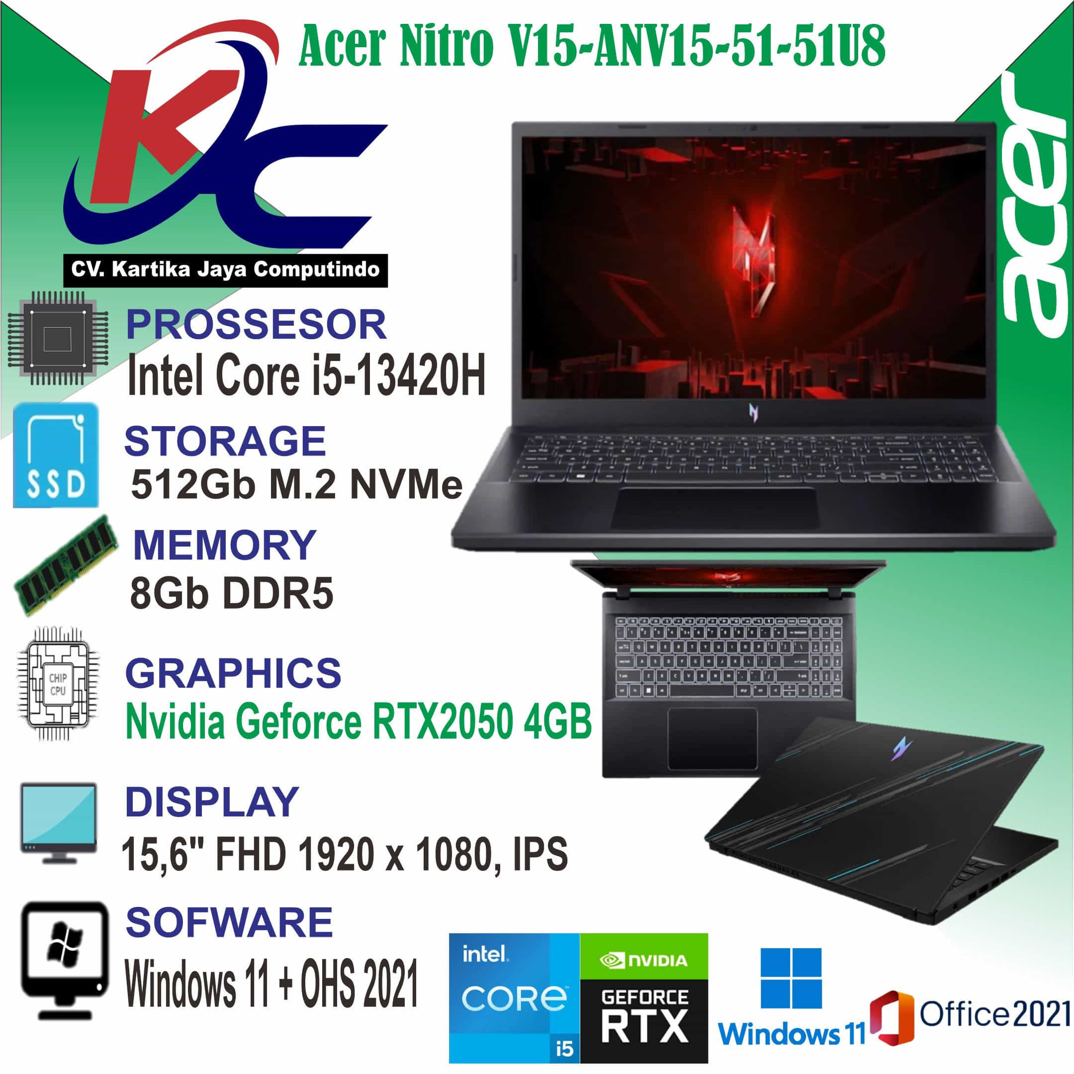 ACER ANV15-51-51U8 I5-13420H/ 8GB/ SSD 512GB/ RTX2050-4/ FHD IPS/ W11 OHS BLACK