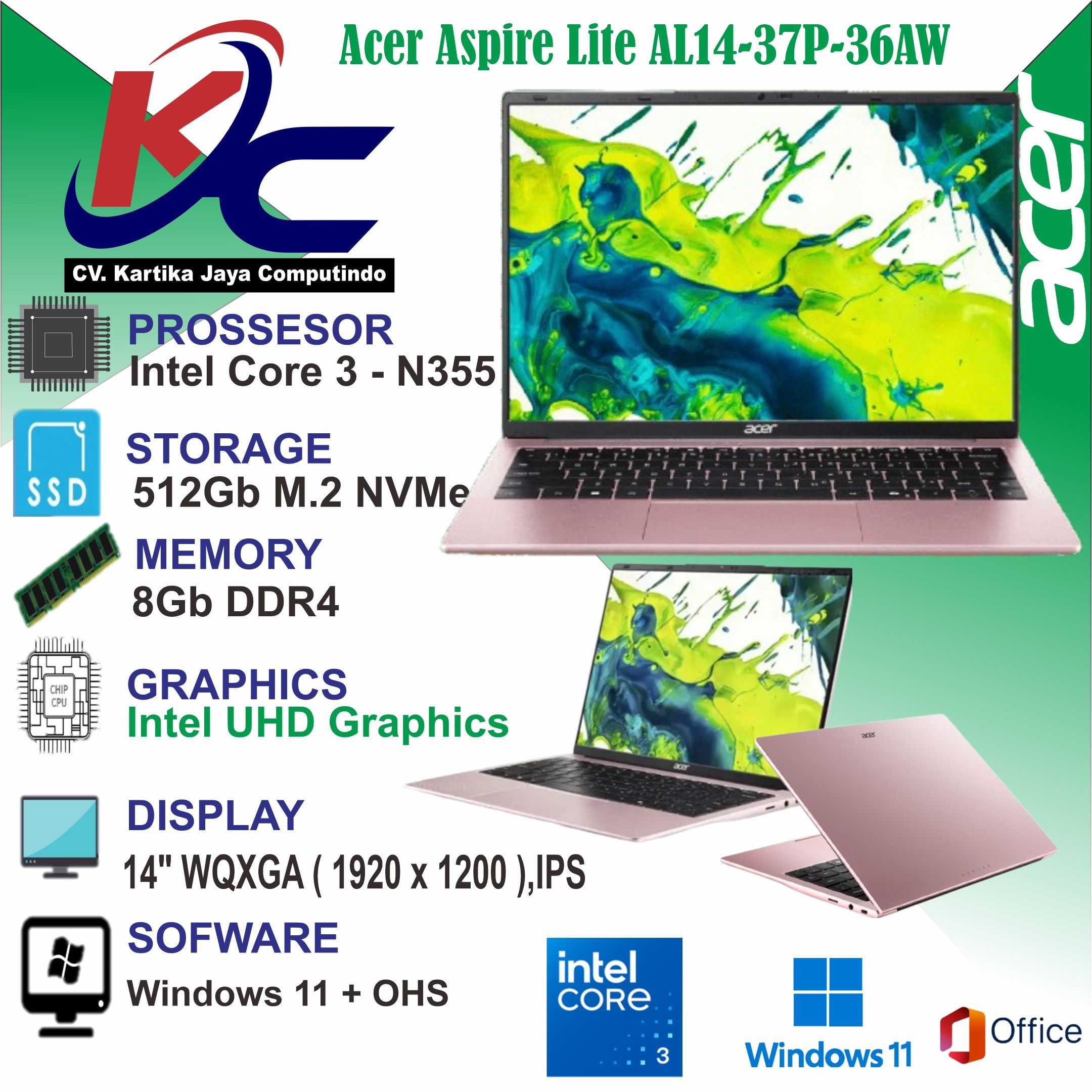 ACER AL14-37P-36AW CORE 3-N355/ 8GB/ SSD 512GB/ W11 OHS24 ROSE SAKURA