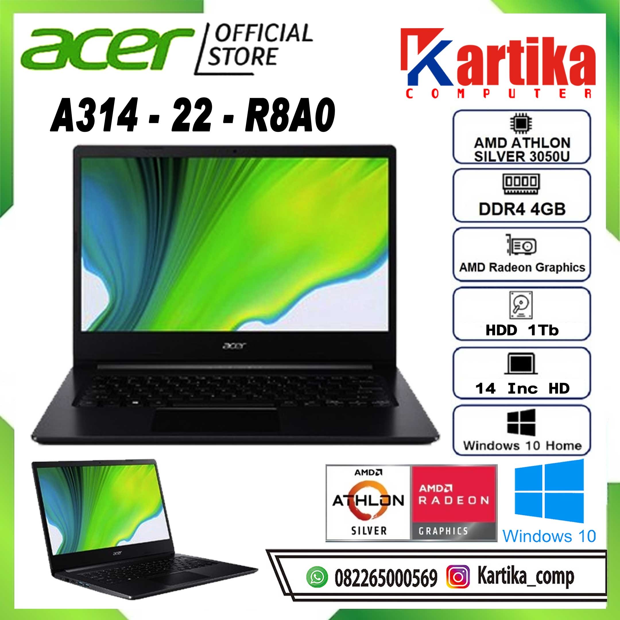 ACER A314-22-R8A0 A3050/4GB/1TB/W10 BLACK